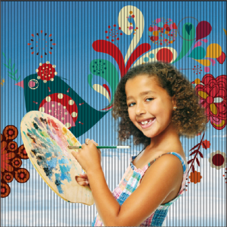 「P」レイヤーを作成し、塗り足し部分までを長方形ツールを使用し枠で囲んでください。囲った部分がデザイン変化が可能範囲です。積層レス演算データ処理(ストライプ加工)を行います。