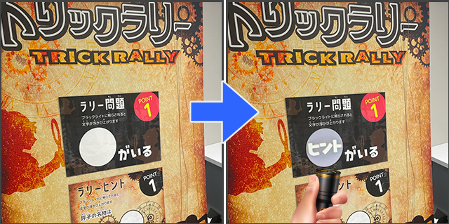 ブラックライトを使ってシルエットクイズの答え合わせを楽しくします。