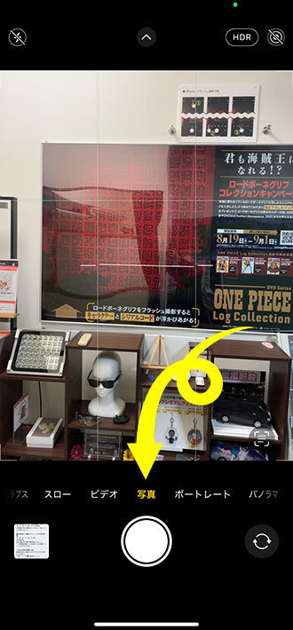- カメラアプリを立ち上げ、[写真]を選択した状態で