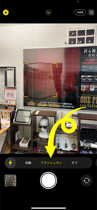 iPhoneは下記の手順でフラッシュを強制ONにすることが出来ます。