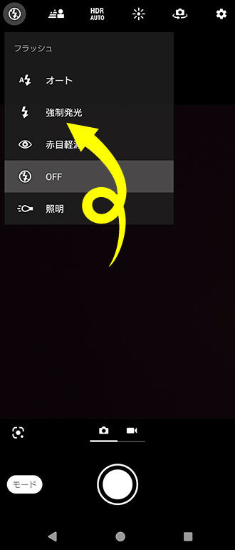 スマホカメラのフラッシュ機能を強制ONにする方法