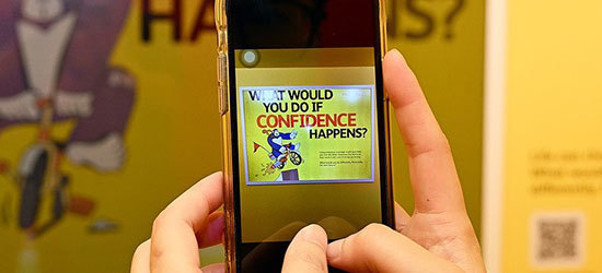 「フラッシュプリント」は、フラッシュ撮影すると目視では見えないものが写る印刷技術です。参加者自身のスマホで楽しむことが出来ます。