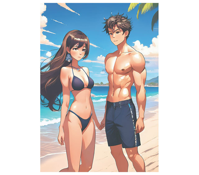 水に濡れると服が透けるような演出を実現できます。屋外広告の場合、雨に濡れた際に透けたように見えます。