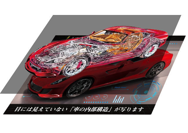 背面から光があたると肉眼では見えない内部構造が見れる非破壊検査のような演出を可能にします。ボタンやセンサーと組み合わせることで参加型の展示や広告にすることや、タイマーでのループとの組み合わせで動的な装飾にすることも出来ます。