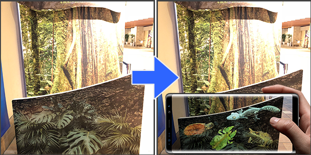 フラッシュ撮影すると隠れた擬態生物が写る楽しい装飾演出で、水族館で開催された期間イベントを盛り上げました。