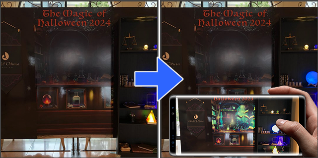 フラッシュ撮影すると不思議なことが起きる楽しい装飾演出で、ショッピングモールで開催されたハロウィンイベントを盛り上げました。