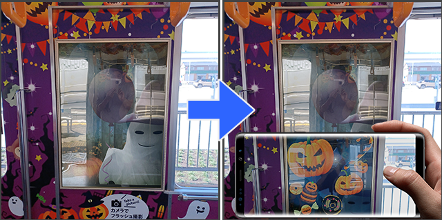 フラッシュ撮影すると不思議なことが起きる楽しい装飾演出で、鉄道で開催されたハロウィンイベントを盛り上げました。