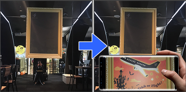 フラッシュ撮影すると不思議なことが起きる楽しい装飾演出で、航空会社のアンテナショップで開催されたハロウィンイベントを盛り上げました。
