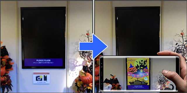 フラッシュ撮影すると不思議なことが起きる楽しい装飾演出で、ホテルで開催されたハロウィンイベントを盛り上げました。
