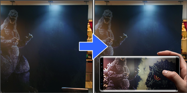 フラッシュ撮影するとゴジラが現れる楽しい装飾演出で、飲食店で開催されたタイアップキャンペーンを盛り上げました。
