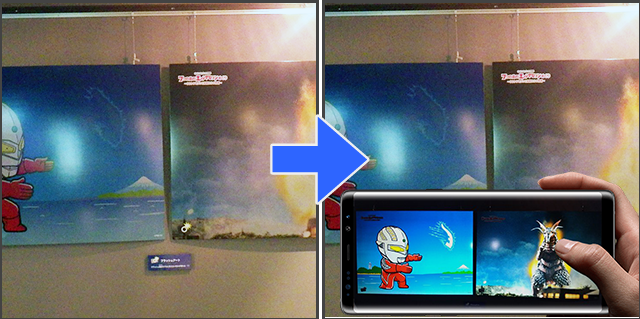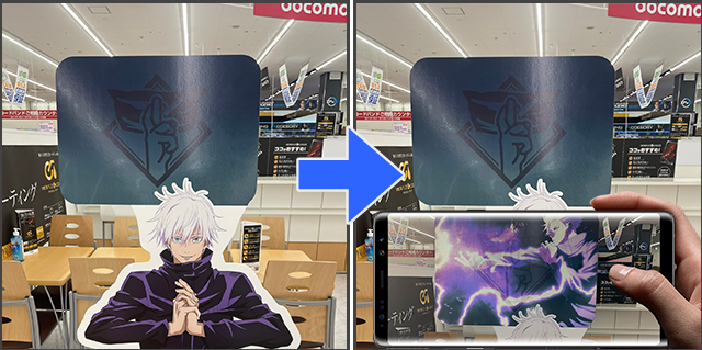 フラッシュ撮影するとスキルが発動する楽しい装飾演出で、家電量販店で開催されたタイアップキャンペーンを盛り上げました。
