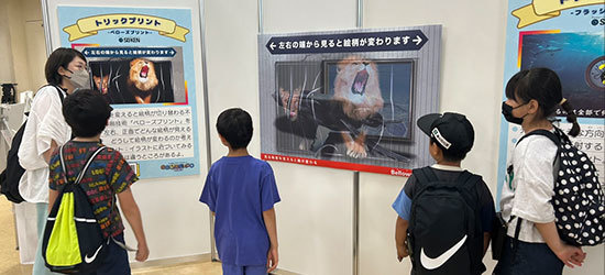 自由研究イベントの展示において、見る角度を変えると「別のトリックアートになる」ユニークな体験が楽しめる仕掛けをベローズプリントで実現。来場者の満足度を高めました。