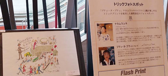 ホテルで開催されたテキスタイルブランドとのコラボイベントにおけるディスプレイ装飾で、フラッシュ撮影すると「絵が変わる」ユニークな体験型アートをフラッシュプリントで実現。コラボイベントを盛り上げました。