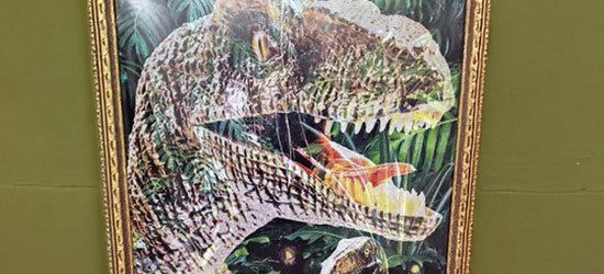 ショッピングモールで開催された恐竜イベントの展示で、フラッシュ撮影すると「森から恐竜が現れる」ユニークな体験型アートをフラッシュプリントで実現。恐竜イベントを盛り上げました。