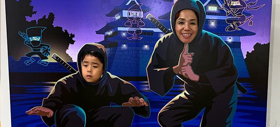 「忍者が現れる」企画展のユニークな顔はめフォトスポットパネル