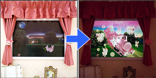 企業ミュージアムの体験型アートで、フラッシュ撮影すると「絵が変わる」ユニークな体験が楽しめる仕掛けをフラッシュプリントで実現。来場者のエンゲージメントを高めました。