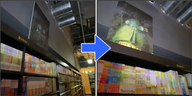 閉店後の書店で開催された書籍販促を兼ねた肝試しイベントの体験型アートで、ヘッドライトをつけて見上げると「妖怪が現れる」ユニークな疑似再現が楽しめる仕掛けをフラッシュプリントで実現。来場者のエンゲージメントを高めました。