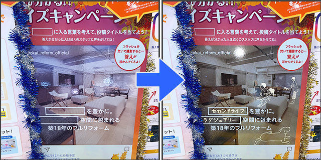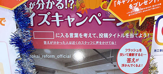 住宅リフォーム感謝祭の会場に設置された、クイズキャンペーン用パネルをフラッシュ撮影すると「答えが現れる」ユニークな仕掛けをフラッシュプリントで実現。キャンペーンを盛り上げました。
