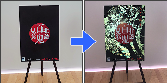 美術館の企画展の体験型アートで、フラッシュ撮影すると「妖怪が現れる」ユニークな疑似再現が楽しめる仕掛けをフラッシュプリントで実現。来場者の満足度を高めました。