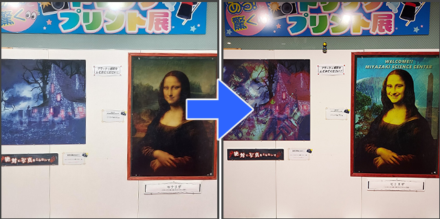 科学館の企画展の体験型アートで、フラッシュ撮影すると「絵が変わる」ユニークな体験が楽しめる仕掛けをフラッシュプリントで実現。来場者の興味関心や満足度を高めました。