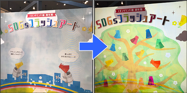 アニバーサリーイベントの体験型アートで、フラッシュ撮影すると「自然が育つ」SDGsにちなんだユニークな仕掛けをフラッシュプリントで実現。イベントを盛り上げました。