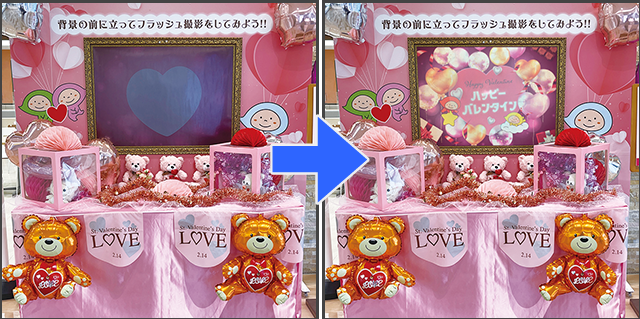 バレンタインイベントの体験型アートで、フラッシュ撮影すると「メッセージが現れる」ユニークな仕掛けをフラッシュプリントで実現。イベントを盛り上げました。