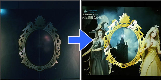 ハロウィンイベントの体験型アートで、フラッシュ撮影すると「不思議なことが起きる」疑似再現を楽しめる仕掛けをフラッシュプリントで実現。ハロウィンイベントを盛り上げました。