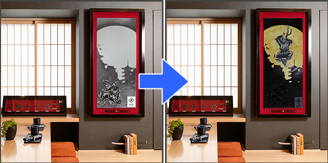 ホテルのコンセプトルーム客室における額装において、フラッシュ撮影すると「隠れた忍者が現れる」ユニークな体験型アートをフラッシュプリントで実現。インバウンド客への宿泊価値を高めました。