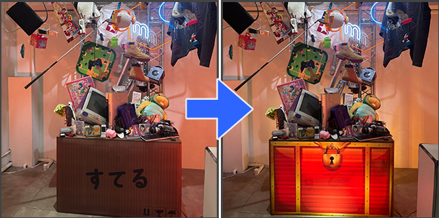 ブランドイベントの体験型アートで、ボタンを押すと「廃棄物がお宝に変わる」ユニークな体験を楽しめる仕掛けをリライトプリントで実現。話題性と来場者のエンゲージメントを高めました。
