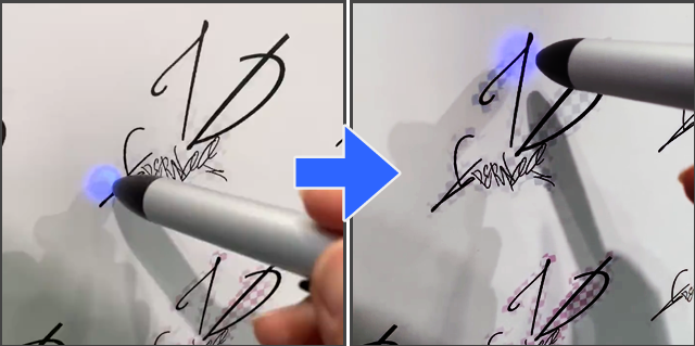 個展の参加型アートで、ペン型UVライトでなぞると「色が着く」ユニークな仕掛けをソーラープリントで実現。来場者を楽しませました。