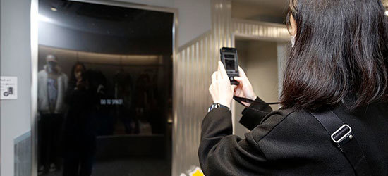 スマートフォンでフラッシュ撮影することで、見えているデザインと異なるデザインが写る印刷技術です。