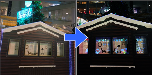 ショッピングモールのクリスマスイベントで、「サンタが現れる」という幻想的な演出をブラックライトプリントで実現。クリスマスイベントを盛り上げ、来場者のエンゲージメントを高めました。