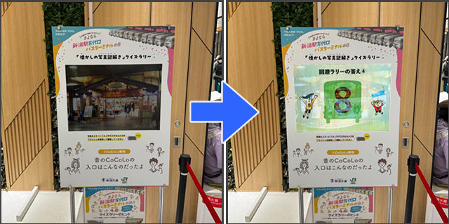 フラッシュ撮影で対象キーワードが浮かび上がるクイズラリー用ポスターの仕掛け