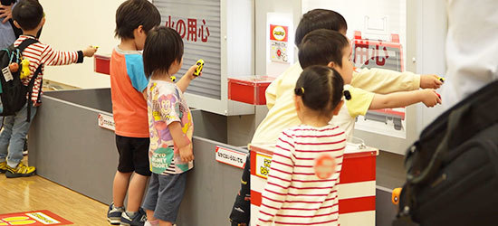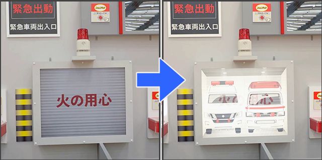 ミニカーブランドが主催するイベントの体験型展示で、センサーをマークにを向けると、「ガレージから救急車が出動する」というミニカーにちなんだユニークな仕掛けをリライトプリントで実現。訪れた子供たちの満足度を高めました。