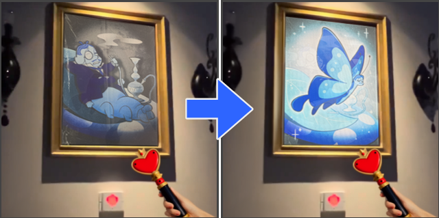 テーマパーク内アトラクションの体験型展示で、センサー反応で「絵が変わる」というアトラクションテーマにちなんだ不思議な仕掛けをリライトプリントで実現。来場者の満足度を高めました。