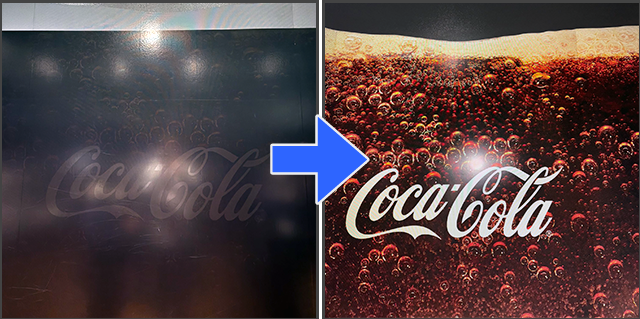 スマートフォンでフラッシュ撮影することで、見えているデザインと異なるデザインが写る印刷技術です。