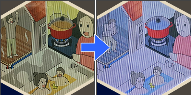 後ろから光があたることで、見えているデザインと異なるデザインが見える印刷技術です。
