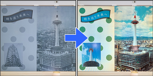 ホテルの内装で、フラッシュ撮影すると「風景の時代が変わる」ユニークな体験が楽しめる仕掛けをフラッシュプリントで実現。宿泊客のエンゲージメントを高めました。
