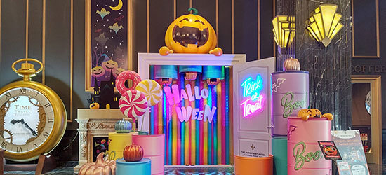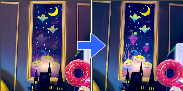 ホテルのハロウィン装飾で、フラッシュ撮影すると「不思議なことが起きる」ユニークな疑似再現が楽しめる仕掛けをフラッシュプリントで実現。来場者のエンゲージメントを高めました。