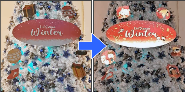 テーマパークのクリスマス装飾で、フラッシュ撮影すると「キャラクターが現れる」ユニークな体験が楽しめる仕掛けをフラッシュプリントで実現。来場者のエンゲージメントを高めました。