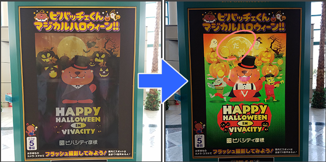 ハロウィンイベントのキーワードラリーで、施設内に何ヵ所か設置されたポスターをフラッシュ撮影すると「絵が変わりキーワードが現れる」ユニークな体験が楽しめる仕掛けをフラッシュプリントで実現。ハロウィンイベントを盛り上げました。