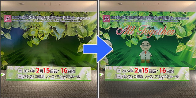 学会のフォトスポットで、フラッシュ撮影すると「キャラクターが現れる」ユニークな体験が楽しめる仕掛けをフラッシュプリントで実現。来場者のエンゲージメントを高めました。