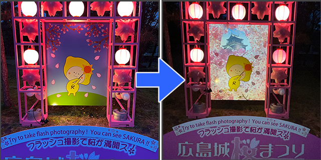 史跡のお花見イベントにおけるフォトスポットで、フラッシュ撮影すると「桜が満開になる」ユニークな体験が楽しめる仕掛けをフラッシュプリントで実現。イベントを盛り上げ、来場者のエンゲージメントを高めました。