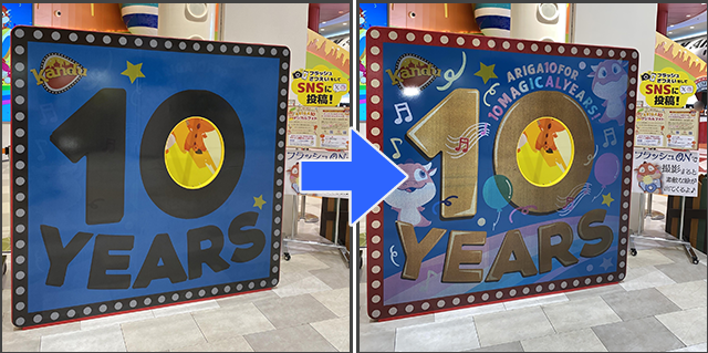 テーマパークのアニバーサリーキャンペーンのフォトスポットで、フラッシュ撮影すると「絵が変わる」ユニークな体験が楽しめる仕掛けをフラッシュプリントで実現。SNS投稿キャンペーンを盛り上げました。