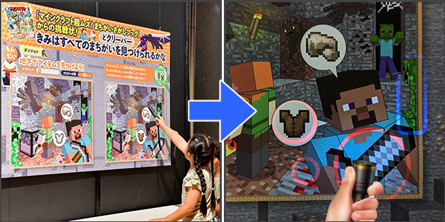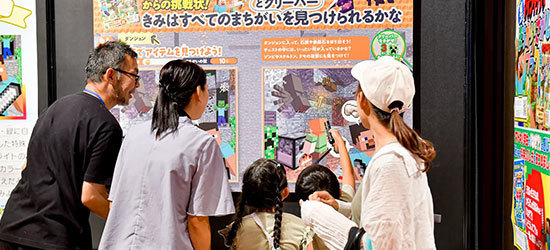 出版社の自由研究イベントの展示クイズで、ブラックライトを照らすと間違い探しクイズの答えが見れるという仕掛けをブラックライトプリントで実現し、来場者のエンゲージメントを高めました。