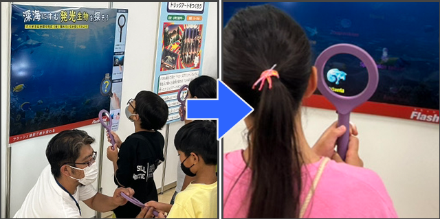 LEDライト付き虫眼鏡を覗くと絵が浮かび上がる体験型展示