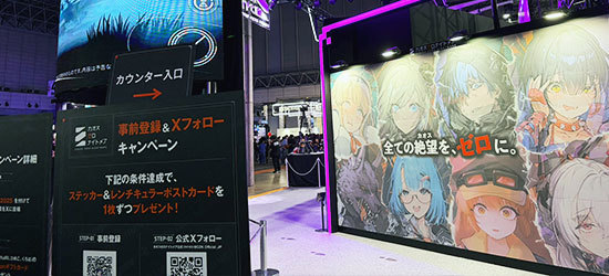 スマホゲーム新作の告知を兼ねた体験型展示で、見る角度を変えると「顔が変わる」追体験を楽しめる仕掛けをベローズプリントで実現。ファンの熱量を高め、自然にUGCも生まれ拡散効果につながりました。