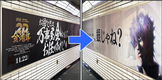 映画新作の告知を兼ねたOOHで、見る角度を変えると「主人公が入れ替わる」追体験を楽しめる仕掛けをベローズプリントで実現。ファンの熱量を高め、自然にUGCも生まれ拡散効果につながりました。