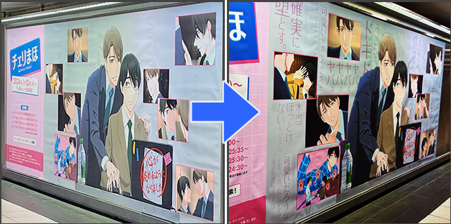 アニメ新作の告知を兼ねたOOHで、見る角度を変えると「秘める想いが見える」ユニークな体験を楽しめる仕掛けをベローズプリントで実現。ファンの熱量を高め、自然にUGCも生まれ拡散効果につながりました。