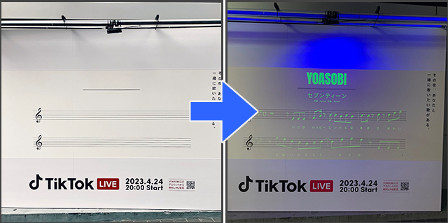 特別配信ライブ開催の告知を兼ねたOOHで、夜にブラックライトが点灯すると「曲の楽譜が現れる」ユニークな体験を楽しめる仕掛けをブラックライトプリントで実現。当日のセットリストを予想するキャンペーンを盛り上げ、ファンの熱量を高めました。